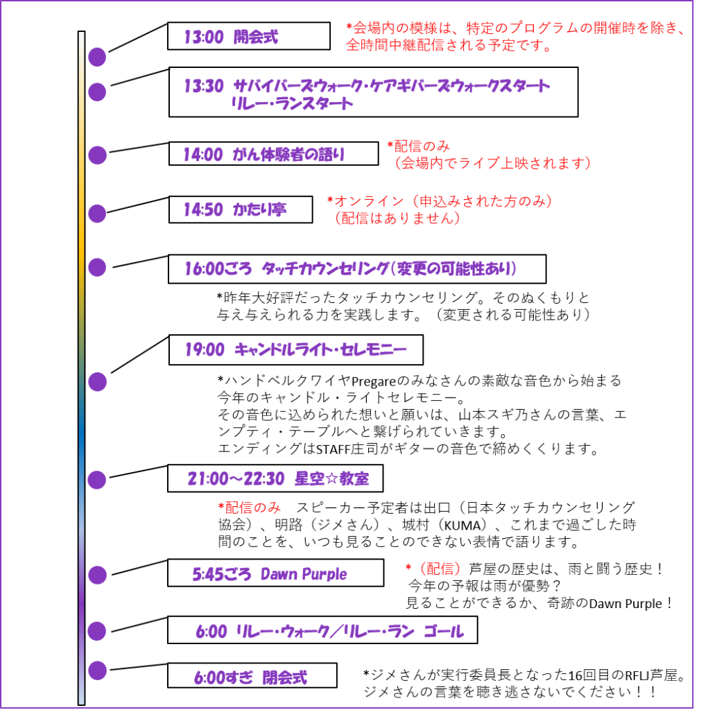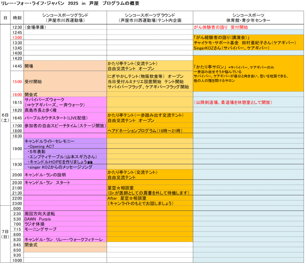 | 2025年9月5日 | リレー・フォー・ライフってなに?リレー・フォー・ライフ芦屋に行ったらどうしたらいいの? | |