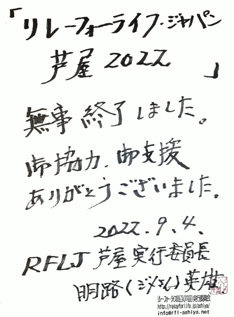 ひとえに参加いただいた方々のおかげではあるのですが、リレー・フォー・ライフ芦屋がここ数年目指してきた方向性が間違っていないと実感できたような気がしています。