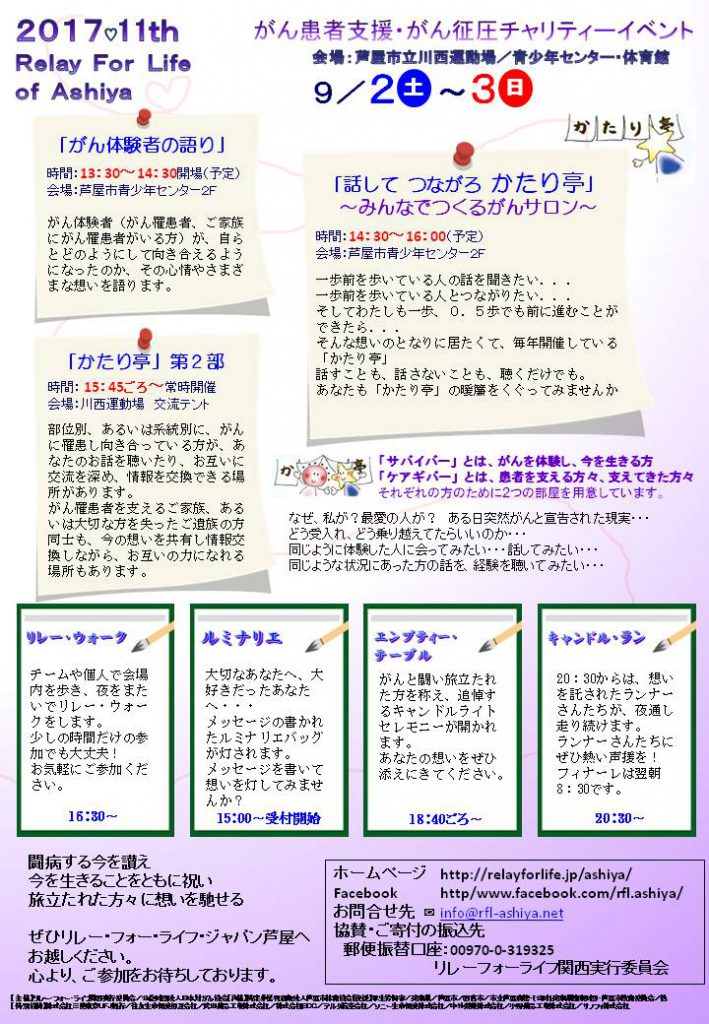 以下、リレー・フォー・ライフ・ジャパン2025芦屋の当日プログラムのご案内です。