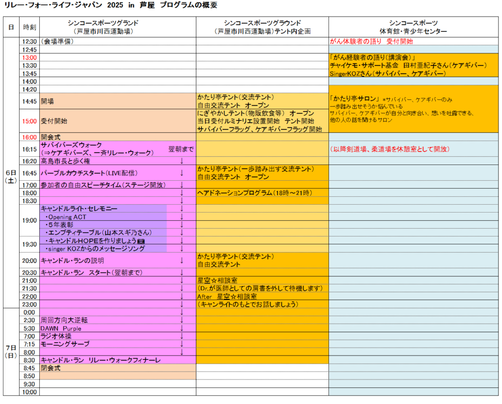 | 2025年9月5日 | リレー・フォー・ライフってなに?リレー・フォー・ライフ芦屋に行ったらどうしたらいいの? | |