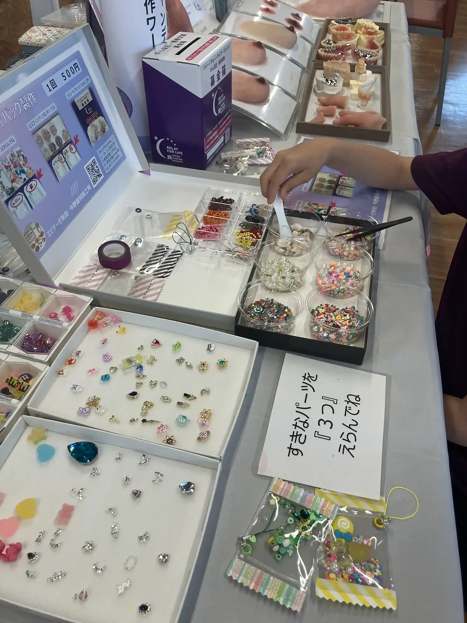会場ではウィッグやエピテーゼの展示、口腔ケアの啓発、工作のワークショップ、ハンドマッサージ、お弁当、手作りグッズなどで参加チームが寄付を募り賑わいを見せていました。