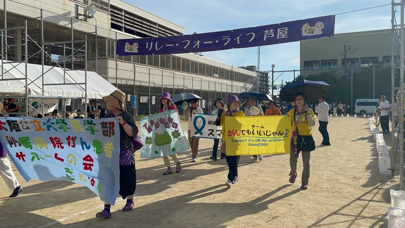 RFLの会場では、歩く人は歩くことで、走る人は走ることで、がんと向き合っている人たちを「支えたい」という想いを表しています。