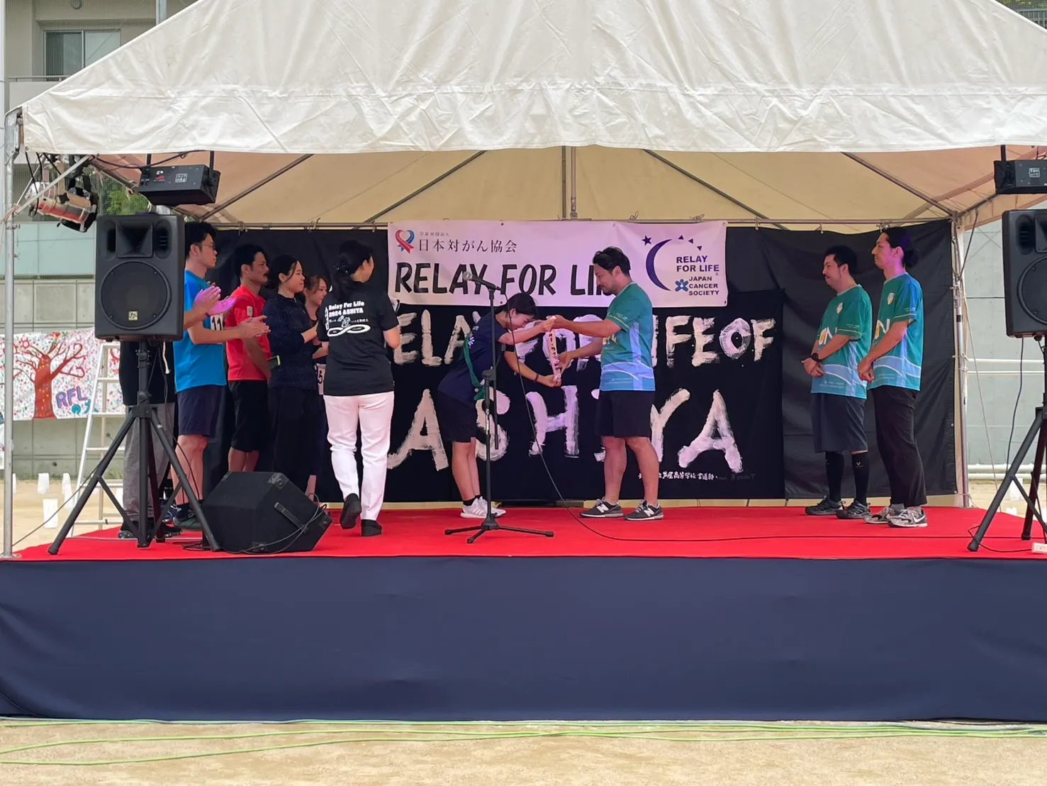 その後、タスキはサバイバーさんたちからケアギバーさんへと渡され、ケアギバーズラップが行われ、その後は参加チームの皆さんによって代わる代わるリレーされていきます。