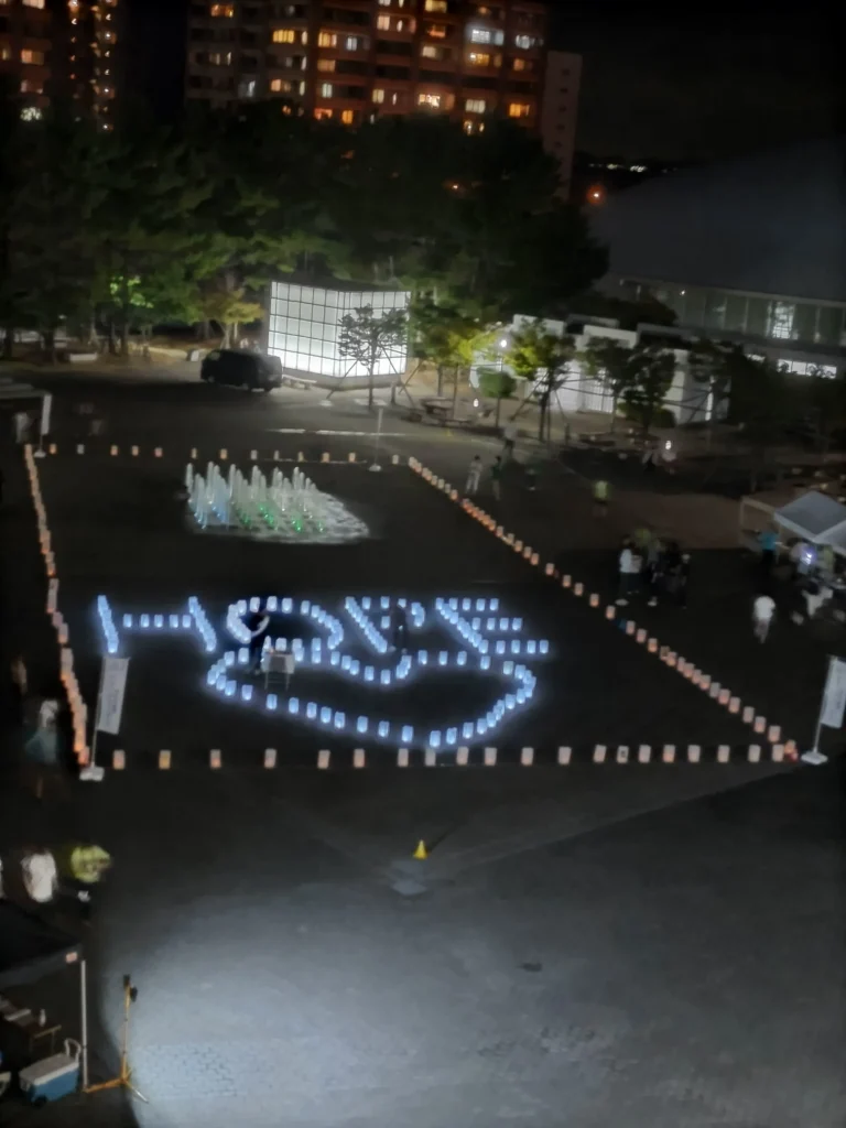 日が沈む頃には、ハートと「HOPE」のライトが会場をやさしく照らし、