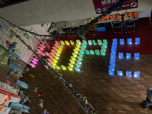 4階をメイン会場に、1階ホールにはルミナリエで作られた「HOPE」の文字が、4階までの階段両脇には、大切な方への追悼や応援のメッセージが書かれたルミナリエが並べられました。