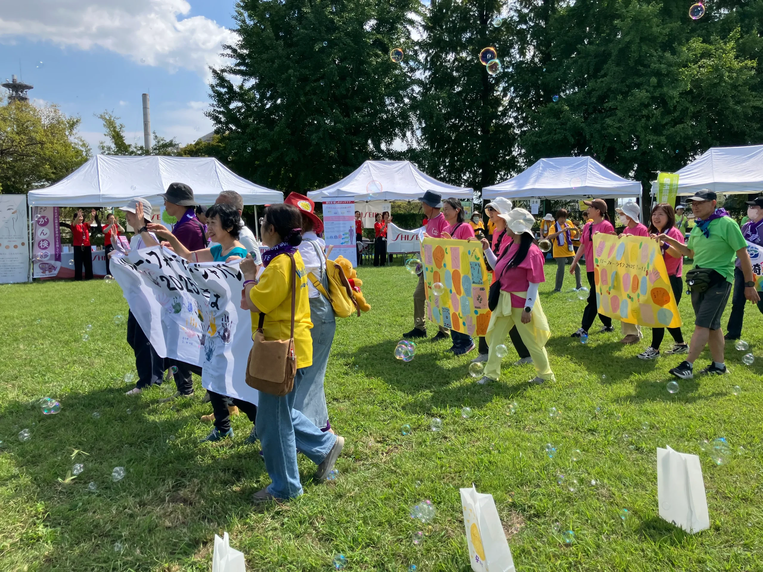 午前中もウォークは途切れることなく続き、がん征圧への思いが会場に広がりました。