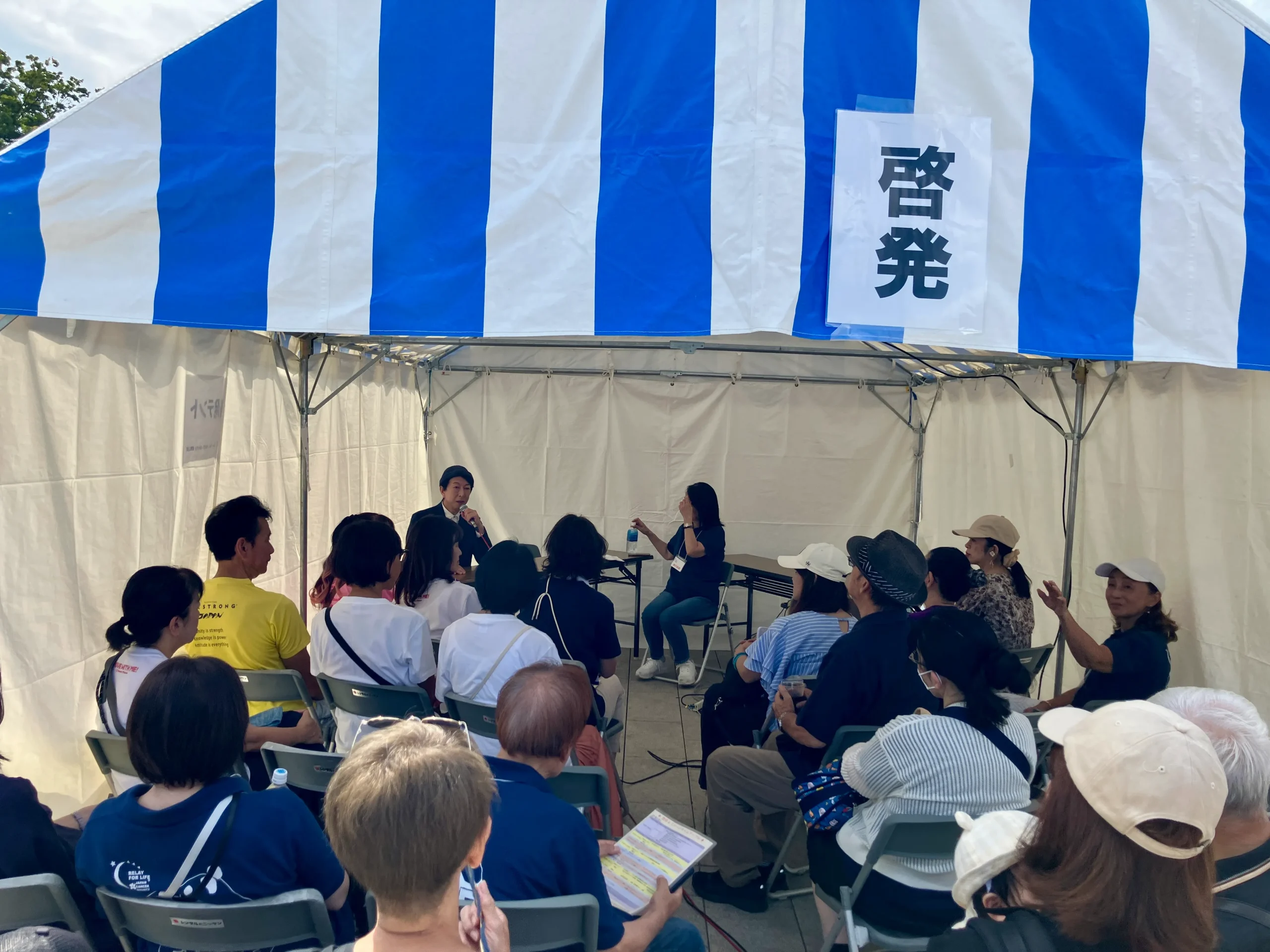啓発テントではがんに関する最新情報を分かりやすくお伝えする講演もあり、熱心に耳を傾ける方も多くらっしゃいました。各チームテントでは趣向を凝らしたチャリティで盛り上げてくださりました。多くのチームが参加してくださり、上野に観光に来た方、そして久しぶりに参加してくださった方、全国各地のRFLJ実行委員さん、新たな出会いや再会を楽しむ姿をたくさん見ることができました。