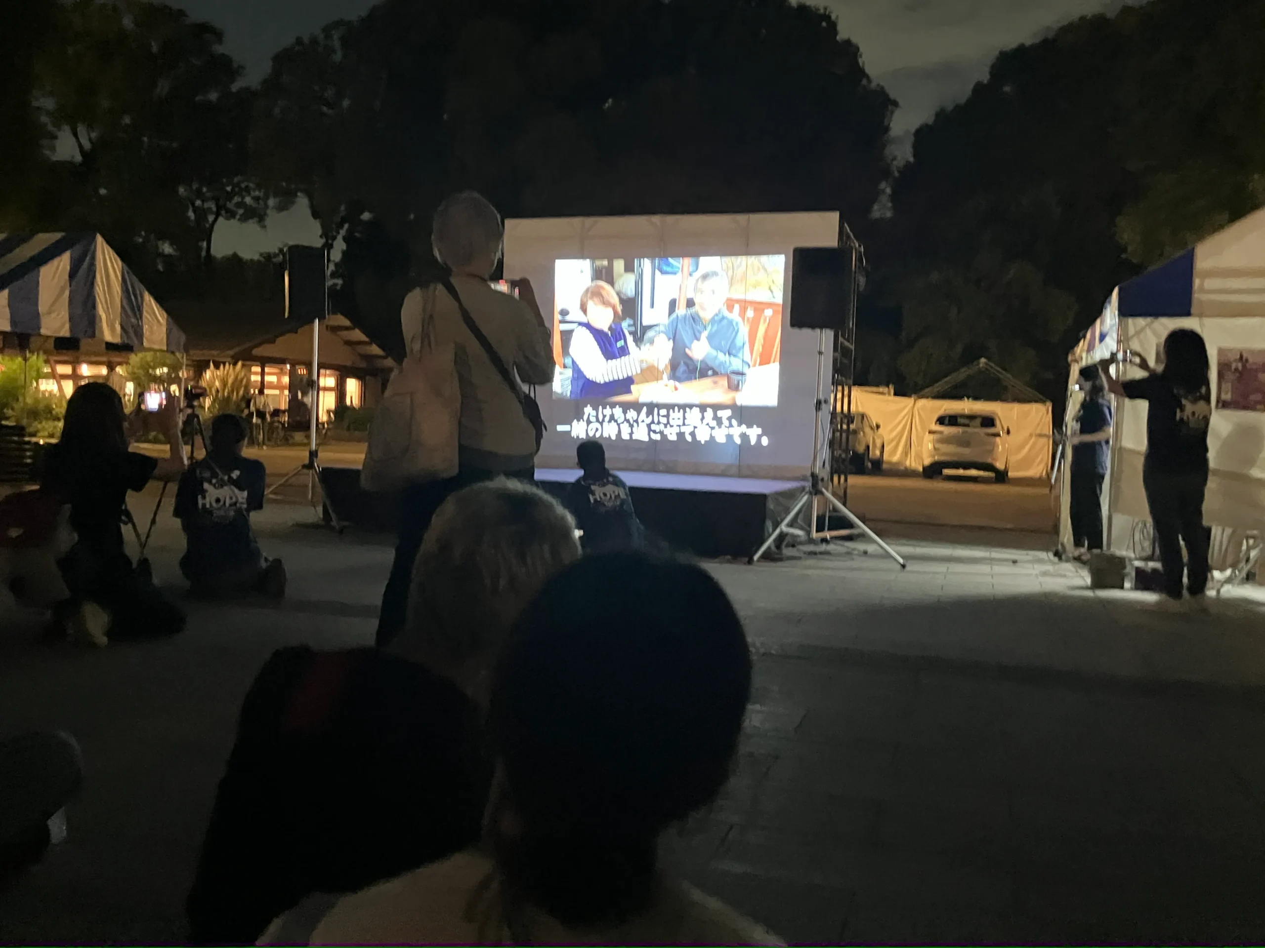 ルミナリエセレモニーではがんで愛する家族を亡くされた方から生前の写真とともにメッセージが綴られた動画が上映され、ここに来ることが出来なかった方、旅立った大切な人や、今、がんと向き合っている方へと皆で想いを馳せました。そして最後に全員でサイレントウォークをしました。