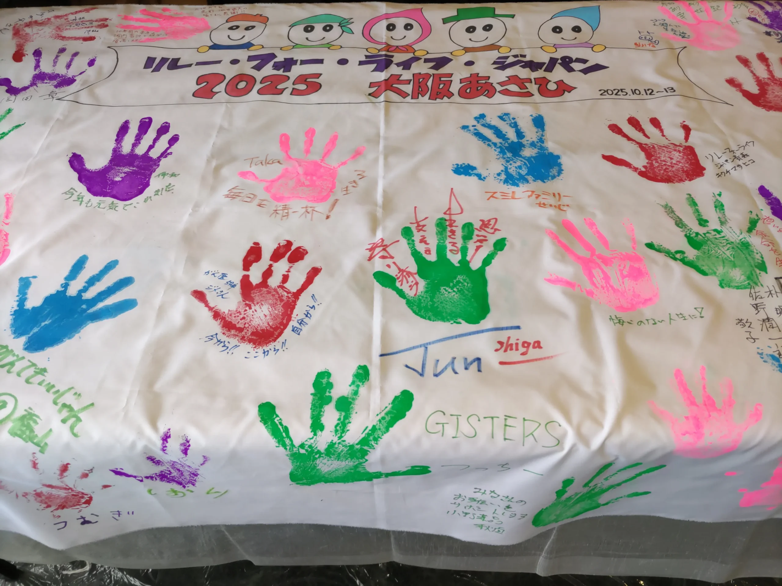 会場には毎年参加してくださっているブースが並び、周回コースには歴代のフラッグ、寄せ書きのTシャツを掲示されていました。旅立った方の手形、メッセージを見ると胸が熱くなります。