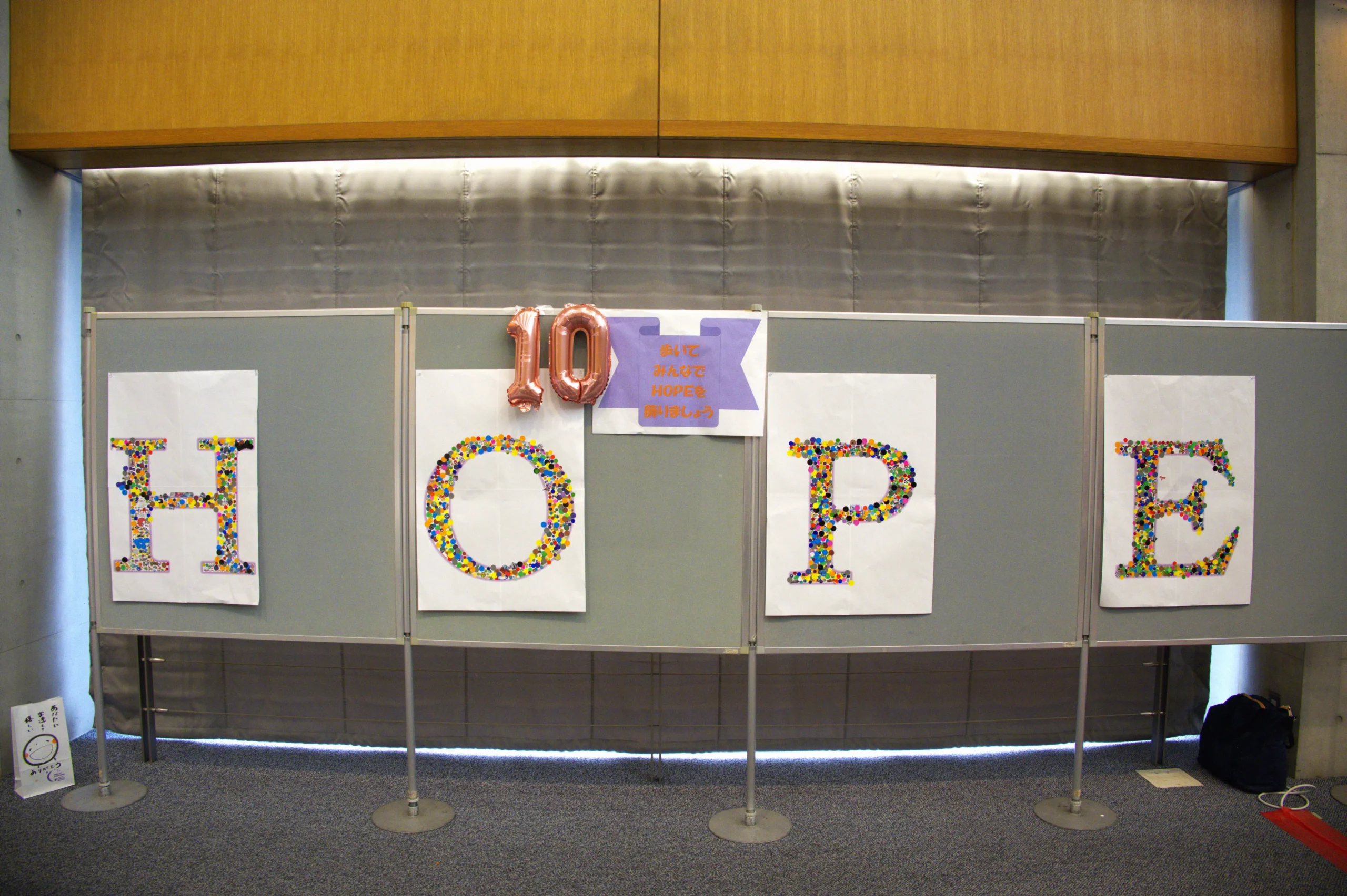 また、一周回るごとにシールを貼り、真っ白だった「HOPE」の文字も、皆さんの想いで彩り豊かに仕上げることができました。