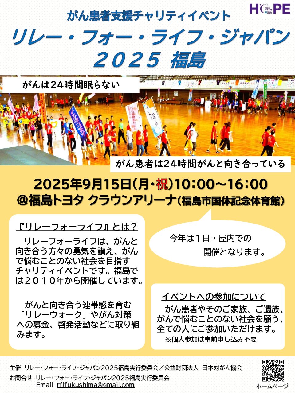 私たち、リレー・フォー・ライフ・ジャパン福島は、2010年からスタートし、2年目に東日本大震災、2019年末からのコロナ感染拡大で2020年の開催断念はありましたが開催方法を変えながら現在を向かえています。これは、ご協力を頂いているすべての皆さんひとり一人の使命感と想いが支えになりここまで来れたと思っています。本当にありがとうございます。