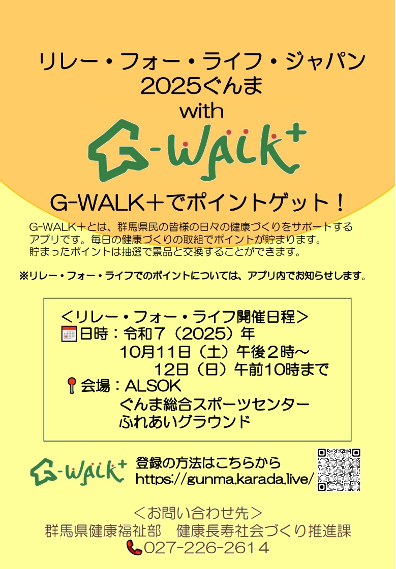 群馬県公式アプリ「G-WALK+」のポイントをRFLJ2025ぐんまの会場でプレゼントいたします。