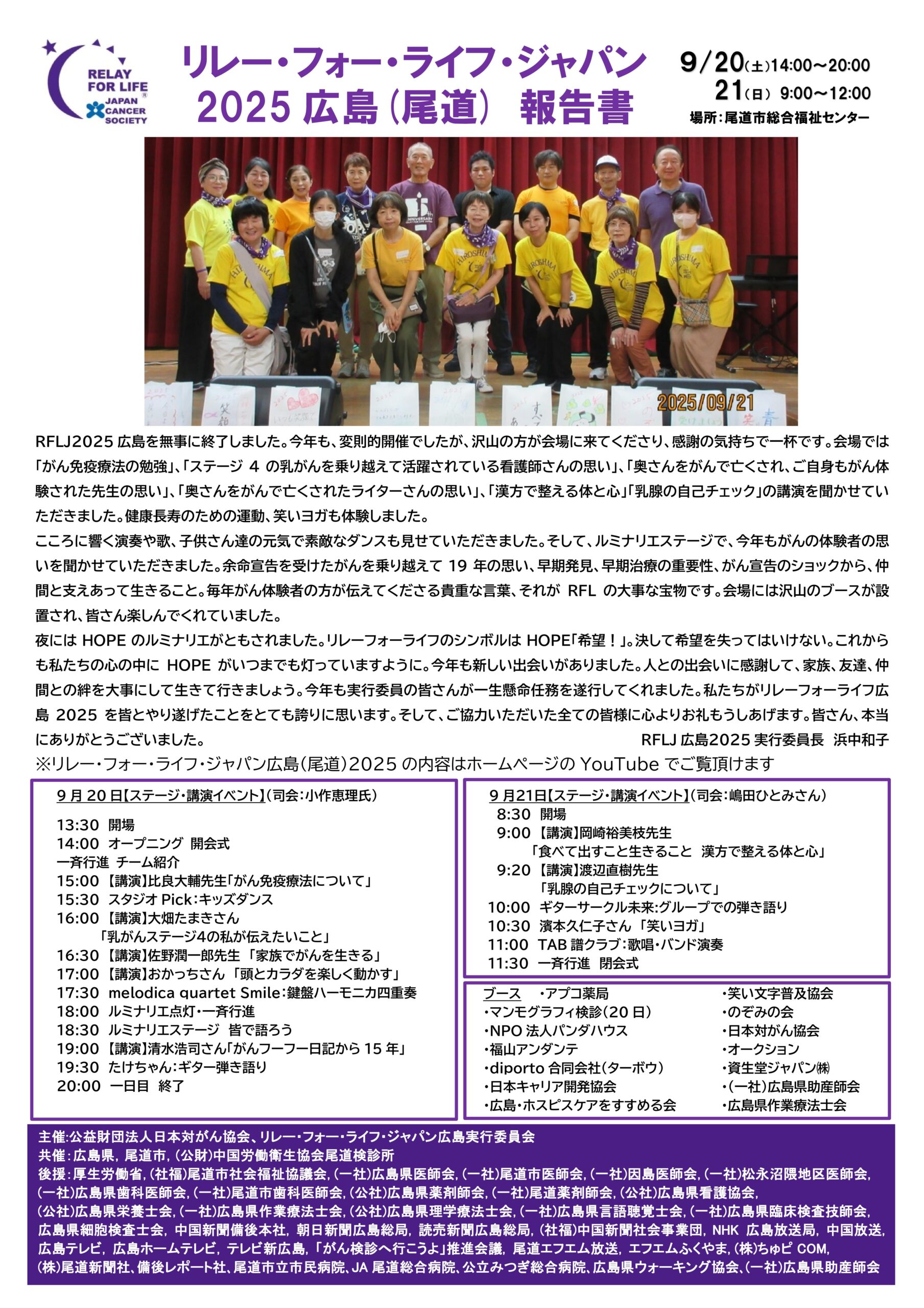 とても大きなイベントなので、準備等が大変ですが、実行委員や協力して下さった方々と共に、このRFL広島の灯りの輪を更に大きく輝かせて行きたいと願っています。