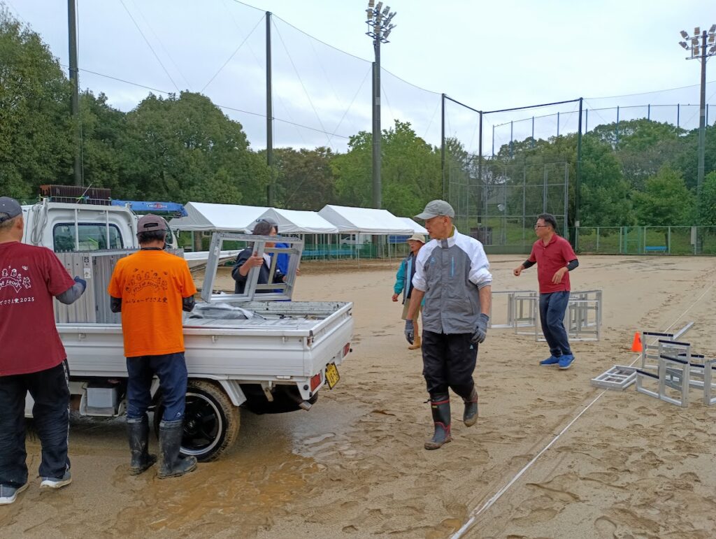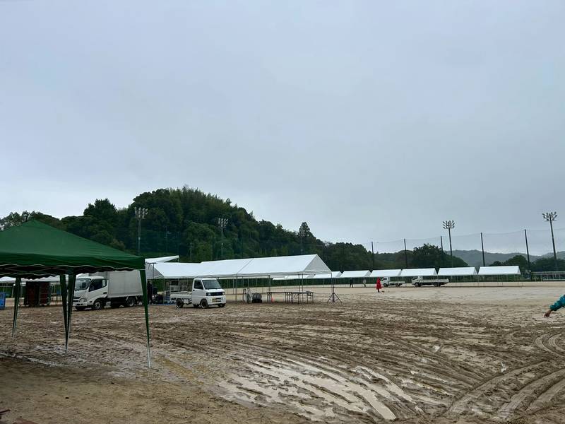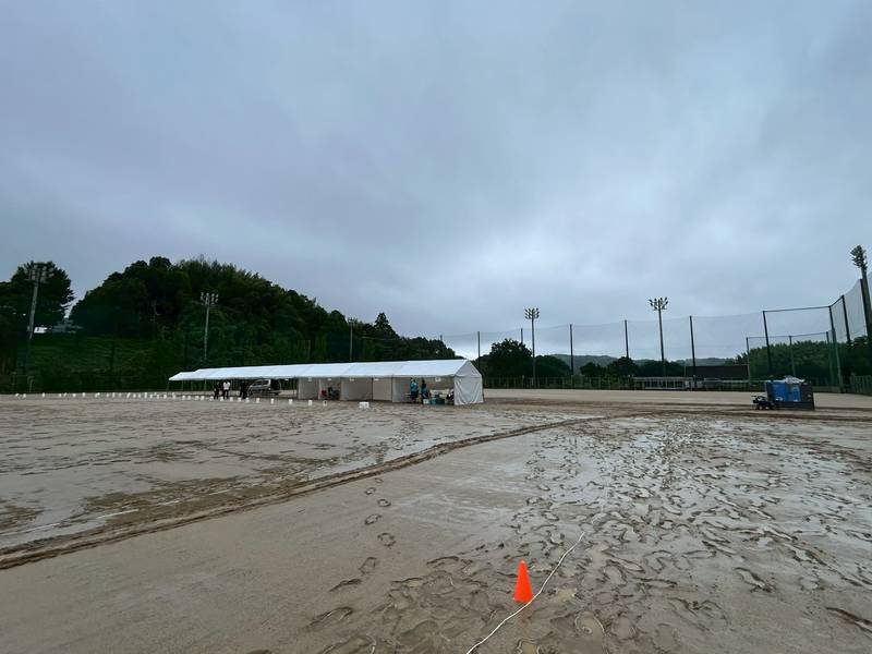 前日からの雨は、当日も止むこともなくグラウンドを濡らしていきます。
