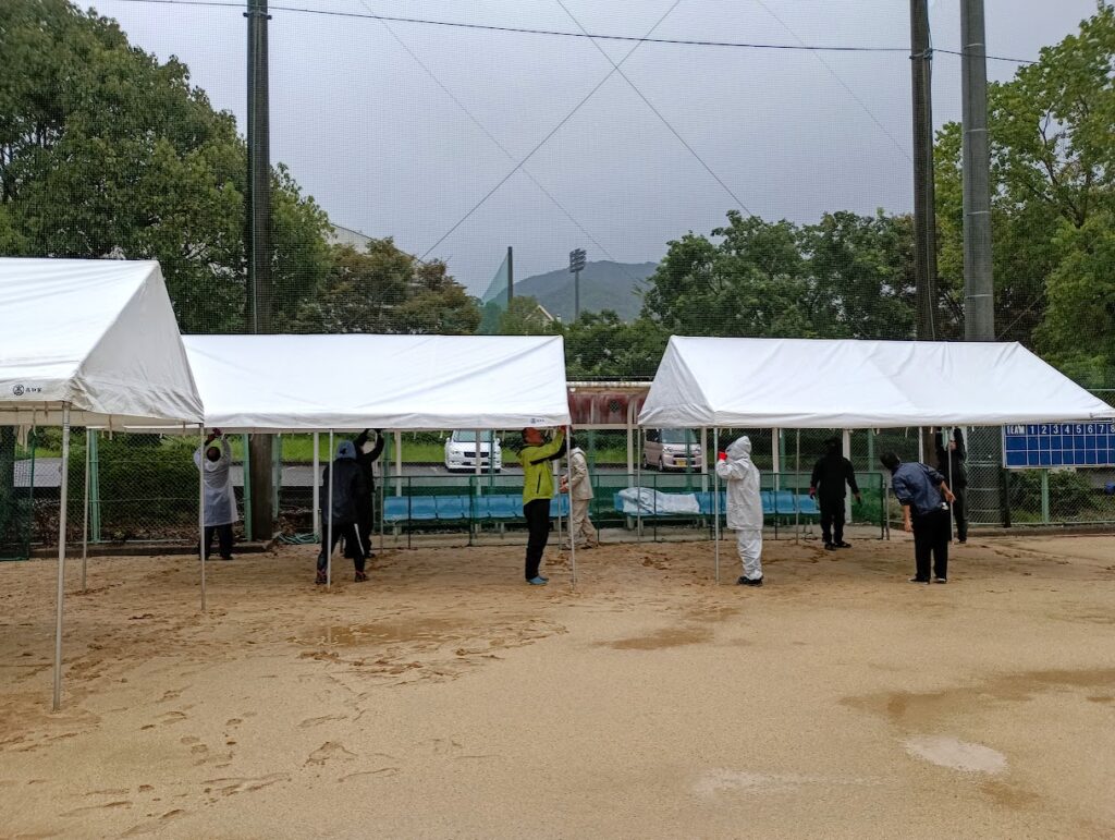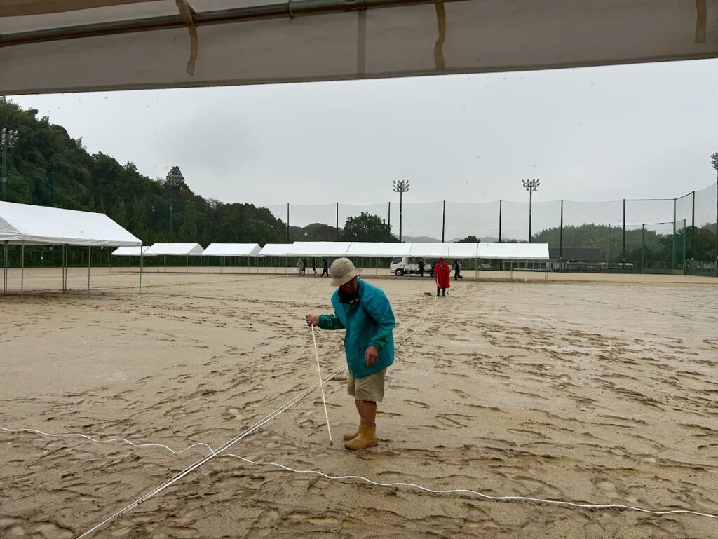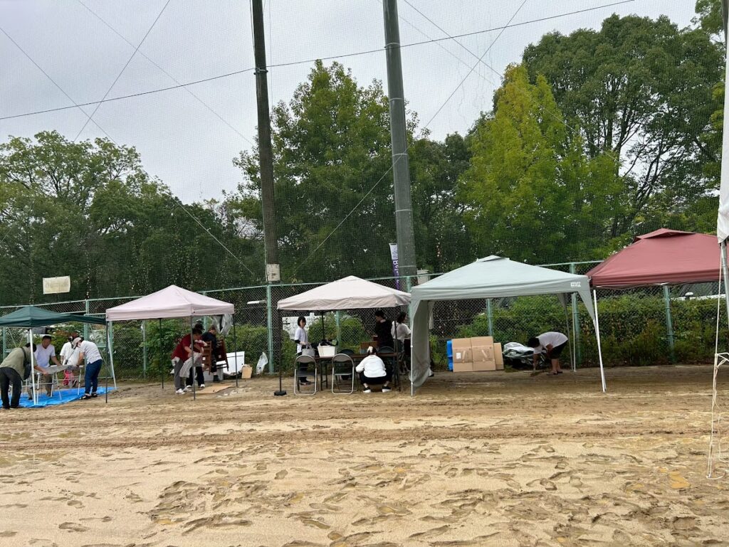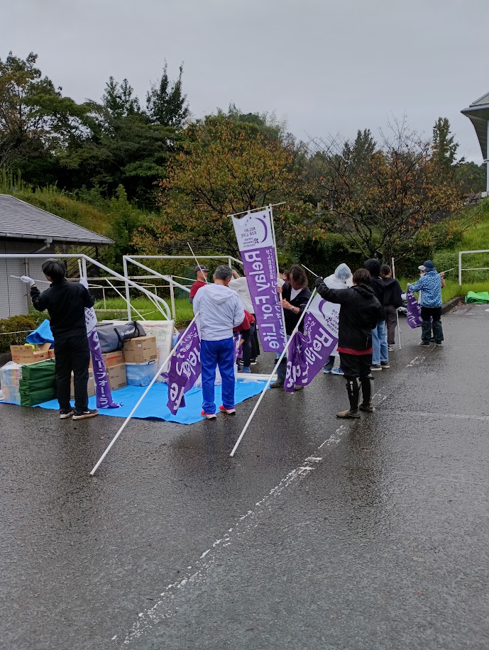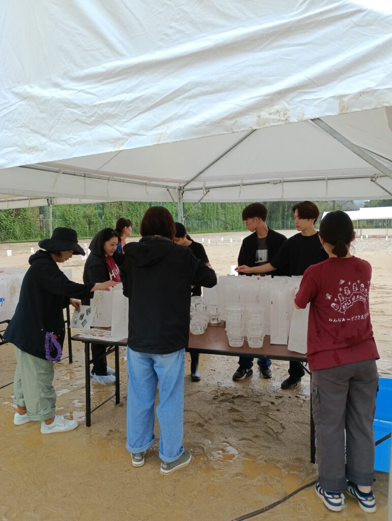 雨天決行の屋外でのイベント、さらに、タスキをつないで夜通しグラウンドを歩くことがメインです。