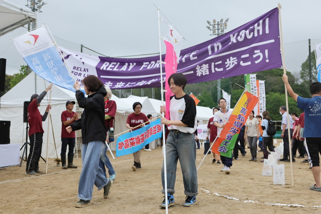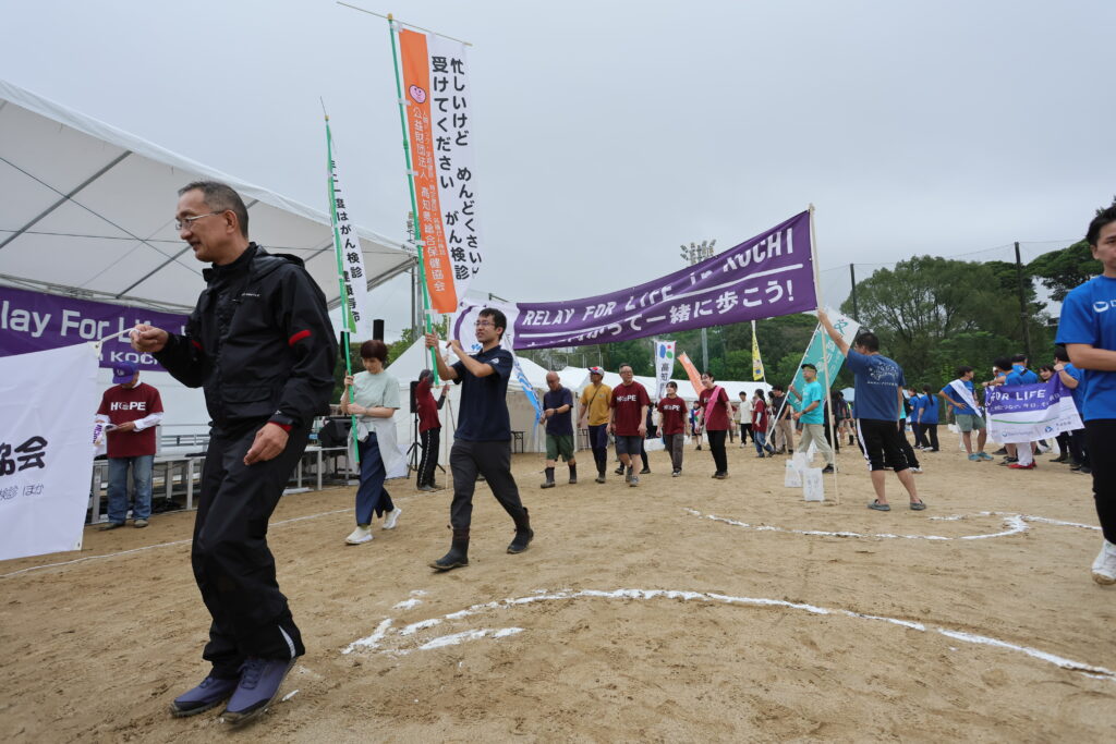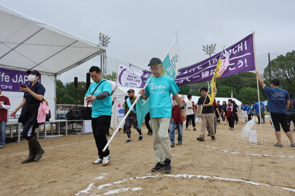 リレーウォークの最初の1周はサバイバーだけが歩きます