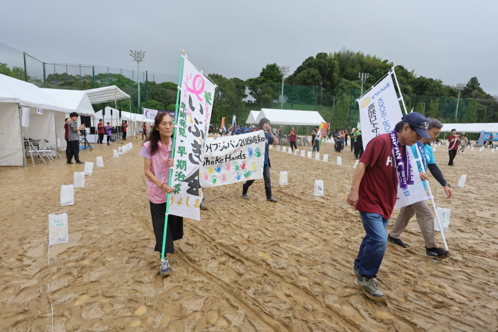 1本のシンボルタスキは各チームが順番につないでいき、24時間でゴールとなります。
