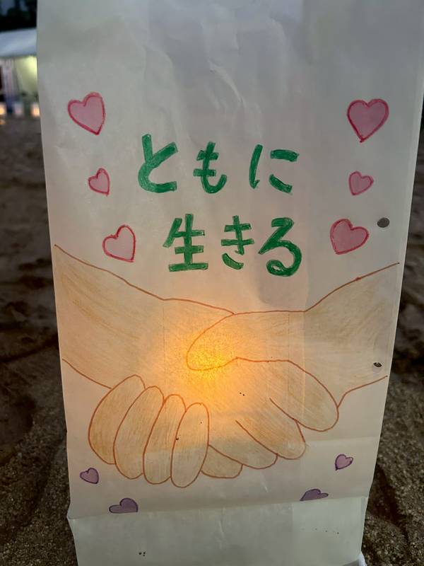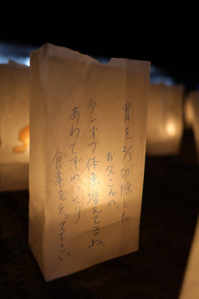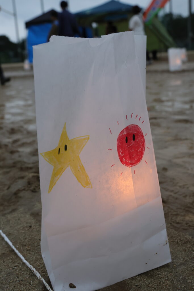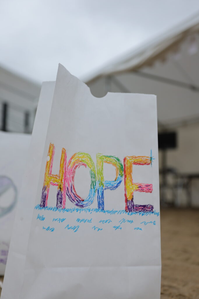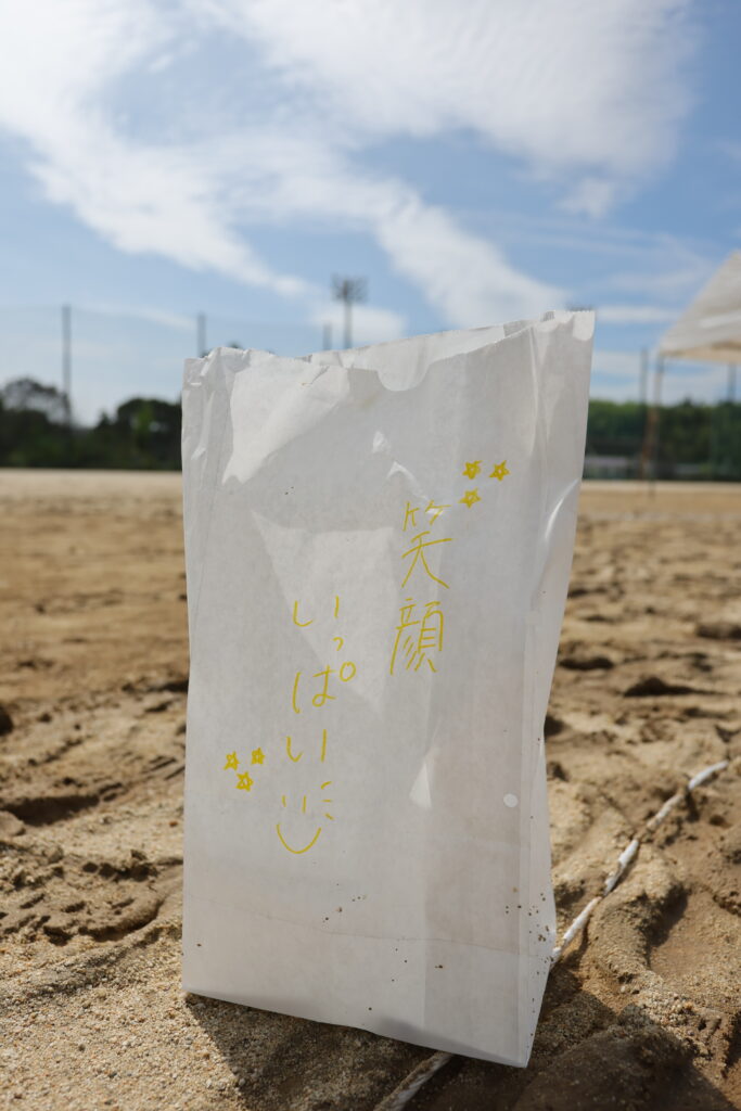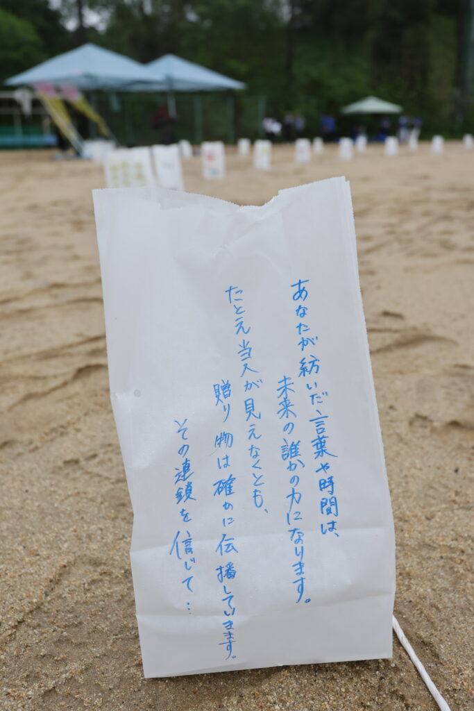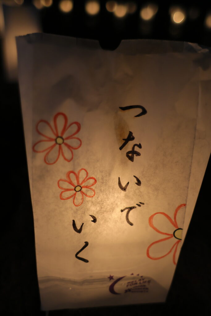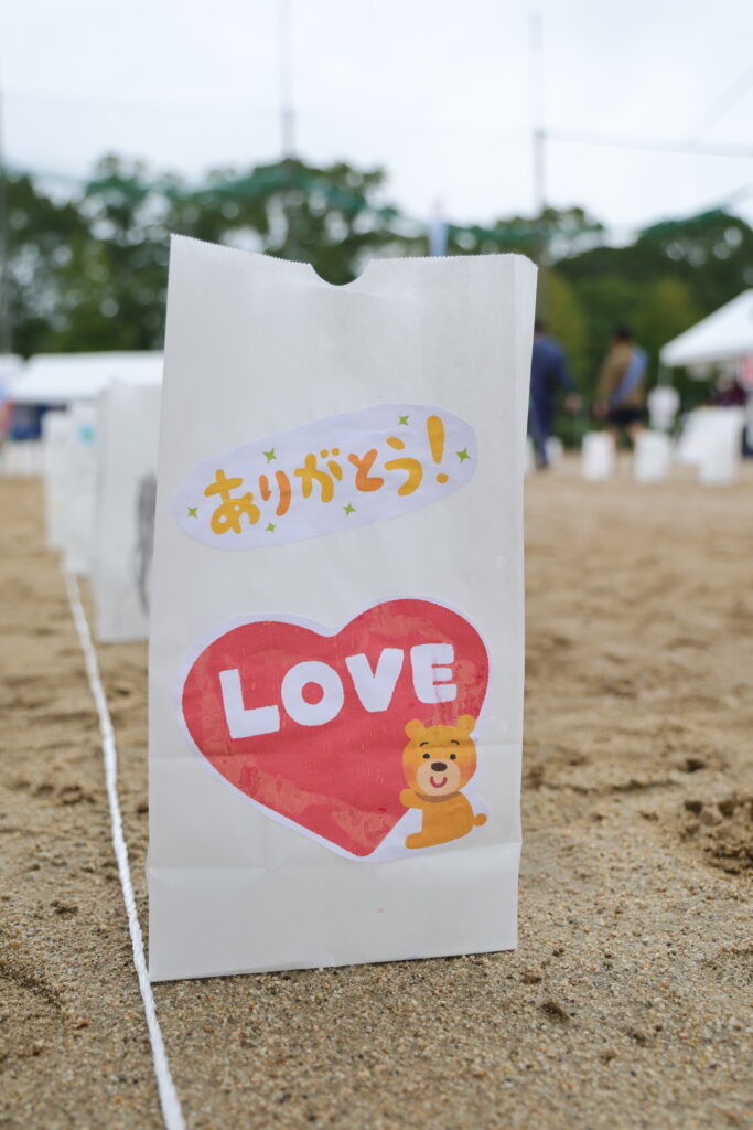 ルミナリエバッグにかかれた文字や絵、リレーイベントに参加していない人たちもメッセージを寄せてくれています。皆の心に届きますように