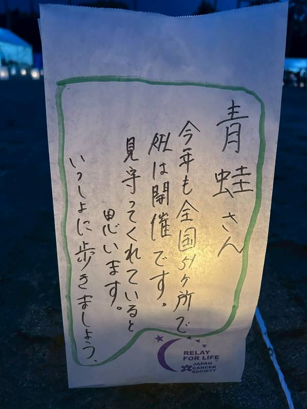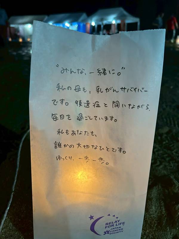 「リレー・フォー・ライフを通じてがんに立ち向かう方々を応援し、一歩一歩が未来につながることを信じて歩きたい」