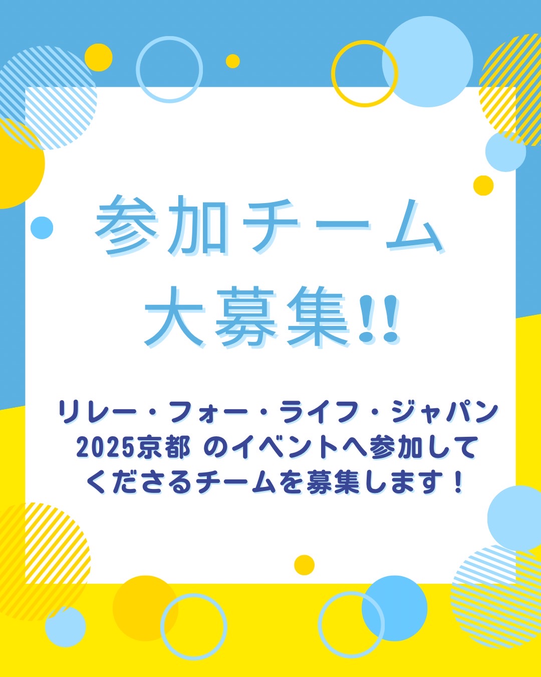 2025年09月12日 チーム参加者 大募集! 2025年の「リレー・フォー・ライフ・ジャパン京都」の開催に向けて、当日ご参加いただける チーム参加者 を募集しています! リレーウォークに仲間と一緒に参加した…続きを読む