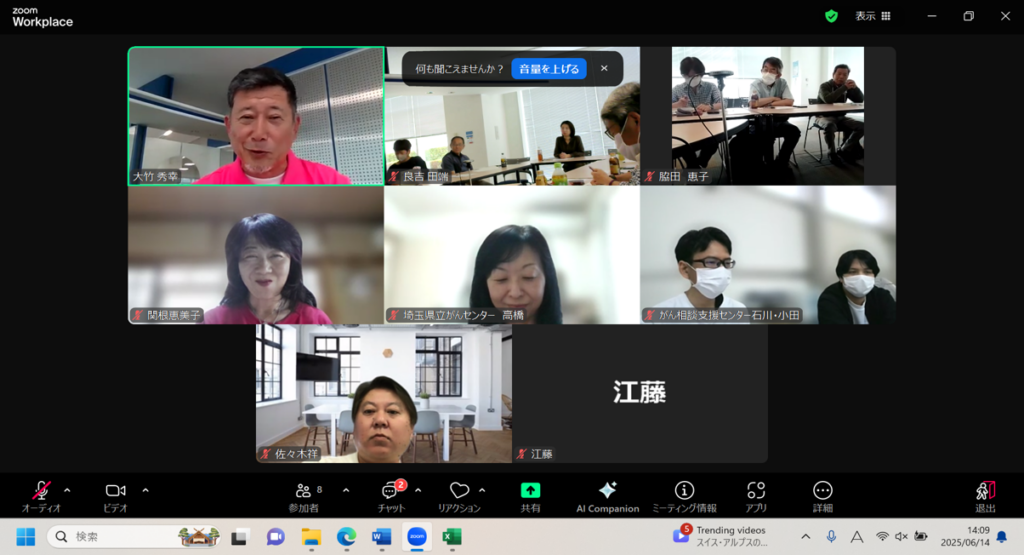 14:00〜16:00 初の試みで実行委員会の活動や進捗状況も知っていただけるように・チーム同士顔がわかり交流できるように💜通しでご参加いただきました。