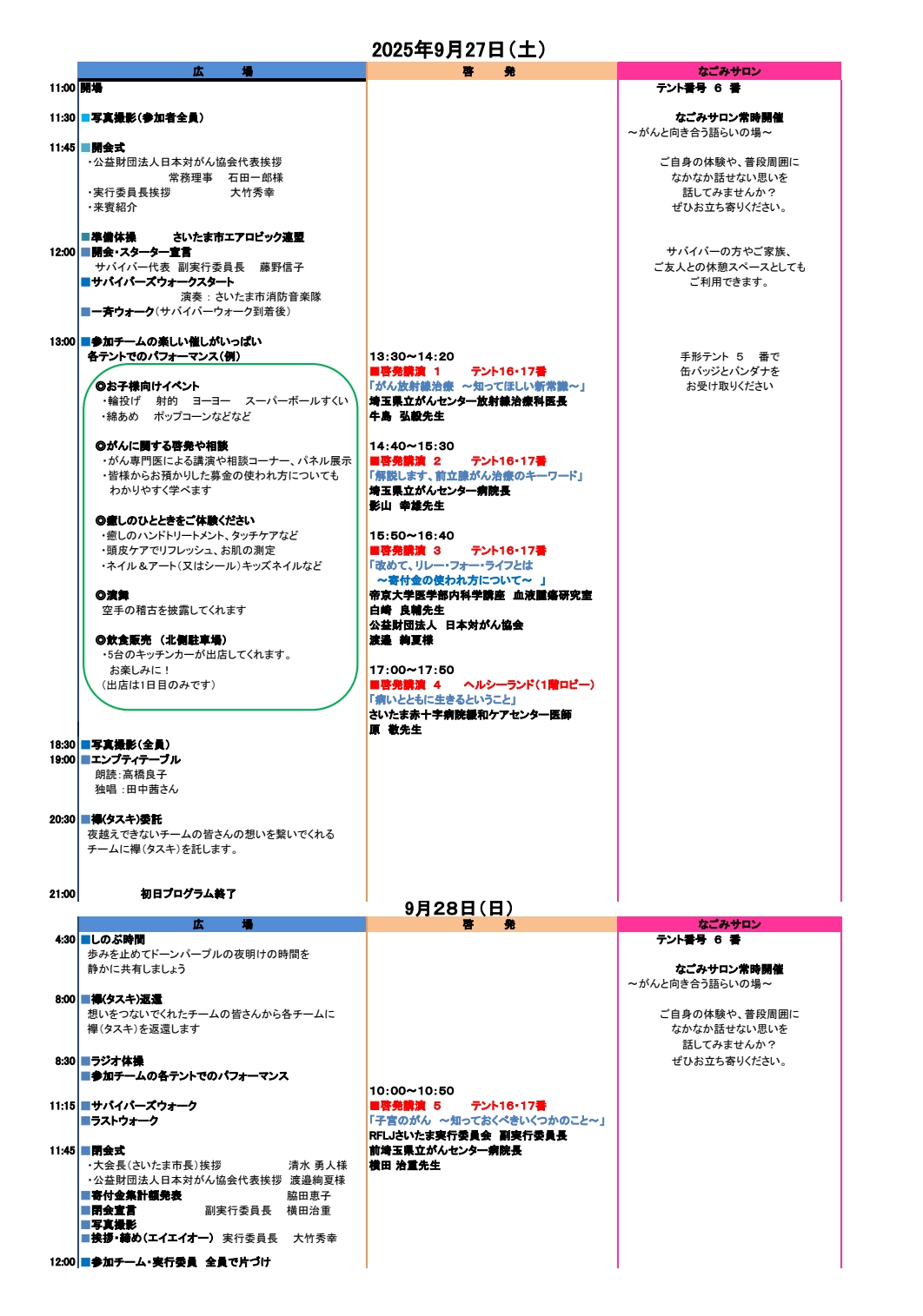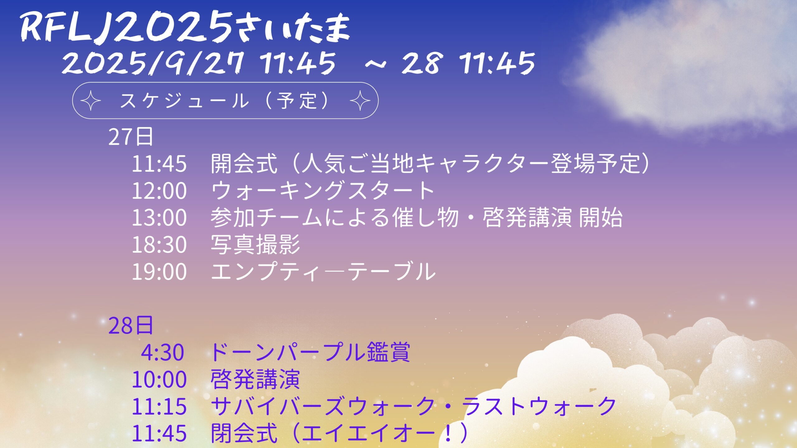 2025年09月14日 あと2週間を切りました タイムスケジュールの詳細がきまったのでお届けします。 9/27(土)〜9/28(日)はぜひぜひ RFLJさいたまの会場「緑の広場」でお会いでにますように✨