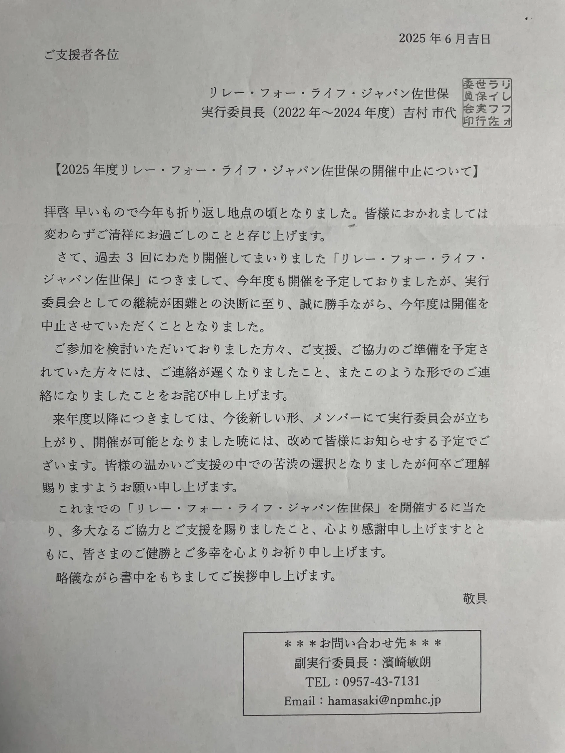 RFLJ佐世保に関するお問い合わせは、(公財)日本対がん協会のお問い合わせページよりご連絡ください。