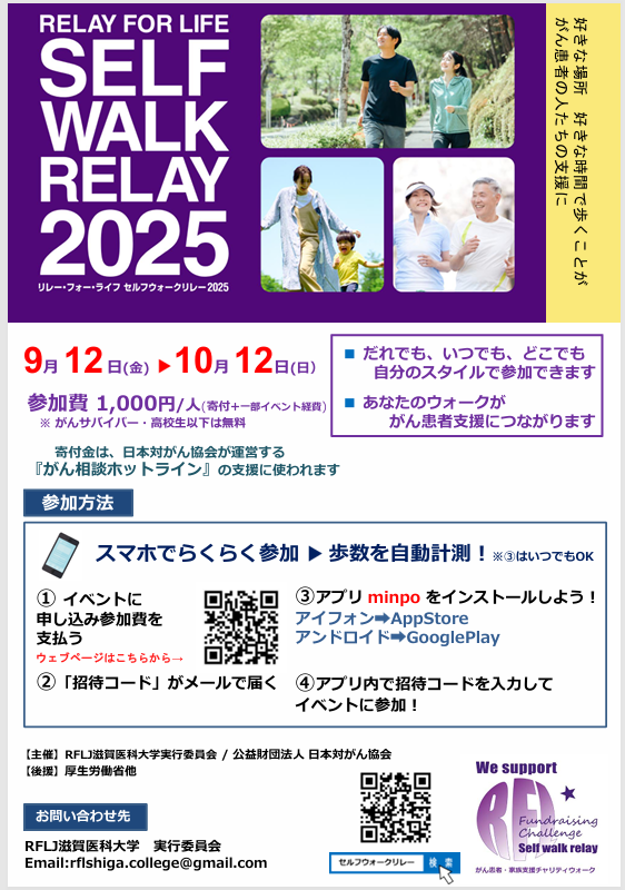 つらい治療を乗り越えた、あるいは現在もがんと闘っておられるサバイバーの方や、がんと向き合う大切な人を傍で支えてこられたケアギバーの方がこのRFLJ滋賀医科大学のイベントで互いに再会を喜び、想いを共有して交流を深めることでつながりが広がっていけばと願っております。イベントに来られる方、来ることができない方、全てのがんに関わっておられる方々に私たち学生がRFLに取り組む姿を通じて元気や希望を届けることができれば幸いです。