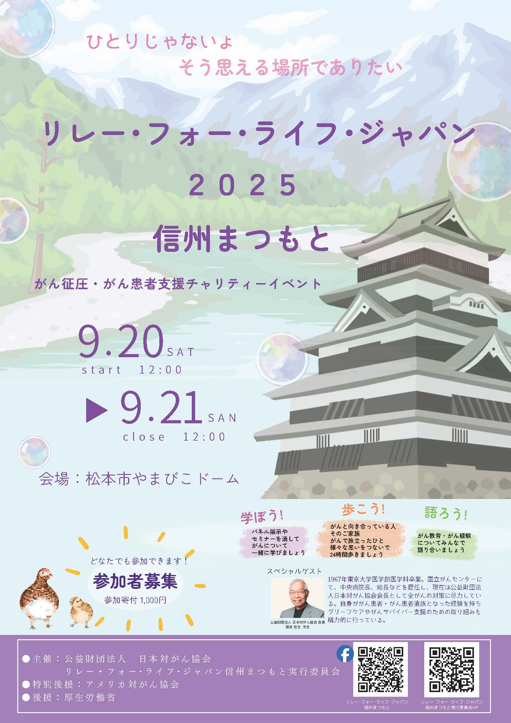 リレー・フォー・ライフ・ジャパン2025信州まつもとの開催に寄せて
