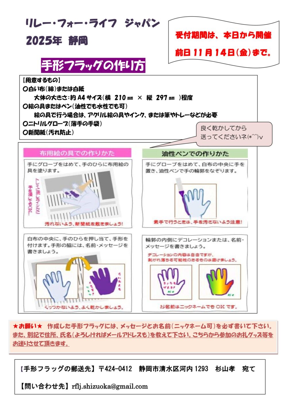 RFLJ2025静岡では、サバイバーさんの手形を募集しています。