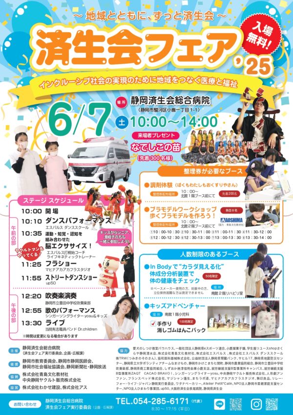 2025年06月04日 静岡済生会病院「済生会フェア’25」 皆さま、こんにちは。 2025年になってもう6月になりました。 日が迫ってきてからのご案内で申し訳ありません。 今週末の2025年6月7日(土)10:00~14…続きを読む