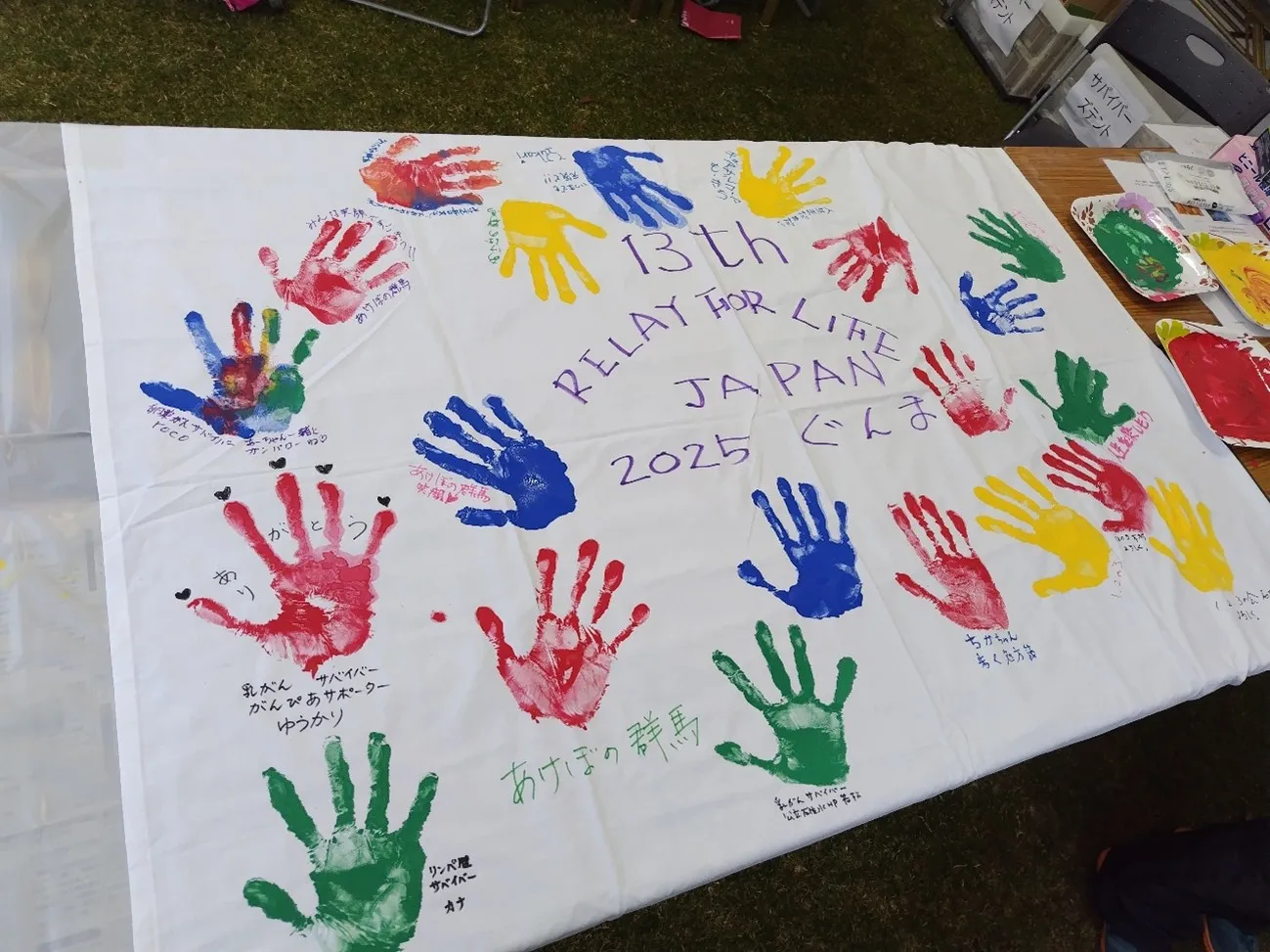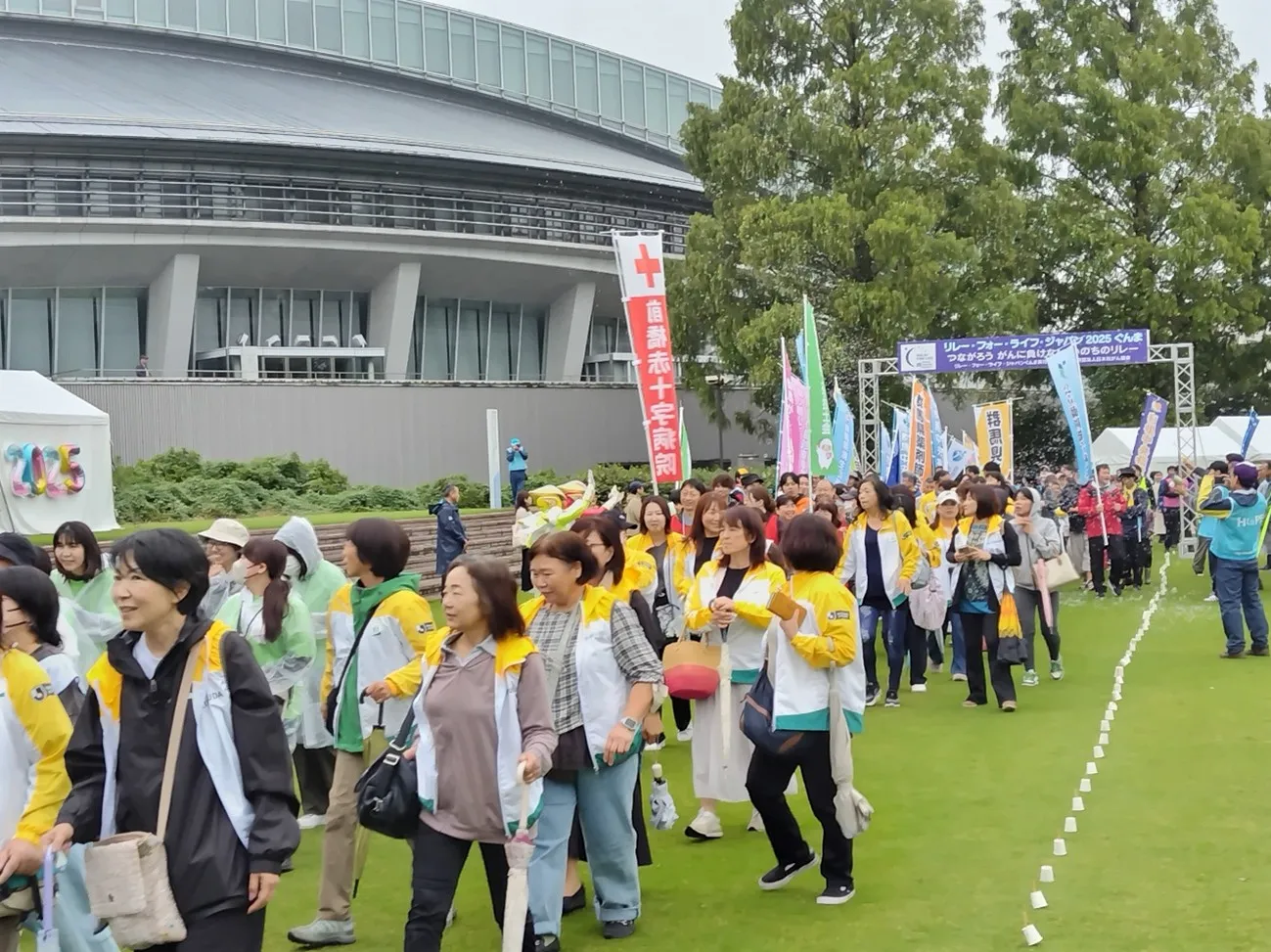 開会式では、山本群馬県知事から力強い挨拶をいただき、会場からは温かい拍手が送られました。続いて行われた「サバイバーズラップ」「ケアギバーズラップ」では、笑顔があふれました。濡れたグラウンドの上でも、誰もが前を向いて歩む姿に、希望の光が感じられました。雨上がりの澄んだ空気の中、歩きながら、交流も深め合いました。